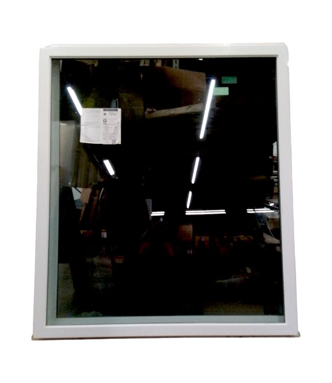 Good condition. Prime Windows Fixed Window. White vinyl frame. Series 720. Direct set. Dual glaze. Argon gas, low-E. 62 1/2"W x 2 1/4"D x 73 7/8"H