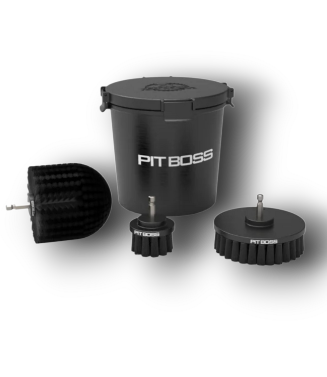 Good condition in box. Like new. Pit Boss Pro Series Drill Attachment Cleaning Kit Rubber Grill Brush Replacement Head 3-in. Compatible with all major power drill brands. Works great for cleaning: Grill Grates, Ash Box, Grease Tray, Barrel, and Chimney.