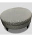 Used in good condition. Black and tan finish color. Decorative pattern designed fabric. Can be used as multiple things a chair, an ottoman, even a table if you wanted. Round shape. Dimensions: Diameter: 40" x 17"H.