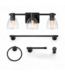 Good condition in box. Like new. Globe Electric Geneva 22-in 3 -Light Matte Black Modern/contemporary Vanity light 5-Piece All-In-One Bathroom Accessory Set. Towel Bar: 20" W x 2.6" D; Towel Ring: 5.9" W x 6.6" H x 2.6" D;