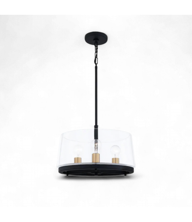 Clear glass Drum Medium Hanging Pendant Light. Uses (3) x 100-watt medium base bulbs, or LED equivalent (not supplied).