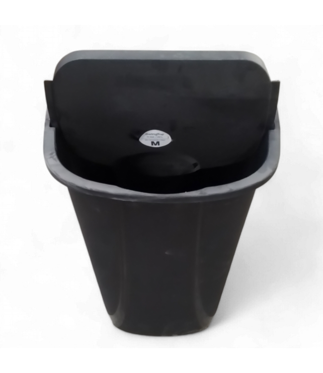 Good condition. Like new. Sterilite Black Plastic Wastebasket 13 -Gallon. Lid easily swings open when touched and stays open when locked in upright position. Durable design. BPA-free and phthalate-free.