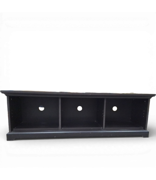 Good condition used. Dark Brown TV/Entertainment Stand. Comes with 3 shelves to make 6 storage compartments. Some wear and tear/scratches, see photos. Dimensions: 59"W x 16 3/8"D x 19"H.