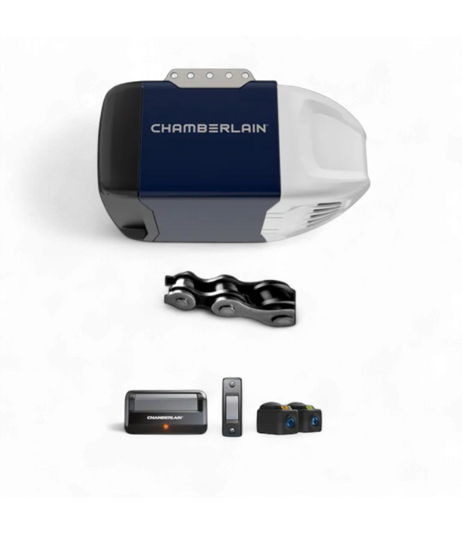 Good condition in box. Like new. Chamberlain 1/2 HP Chain drive Garage Door Opener. Single Light Lens: Brighten your single door garage with powerful single light lens making it safer to enter and exit your vehicle.