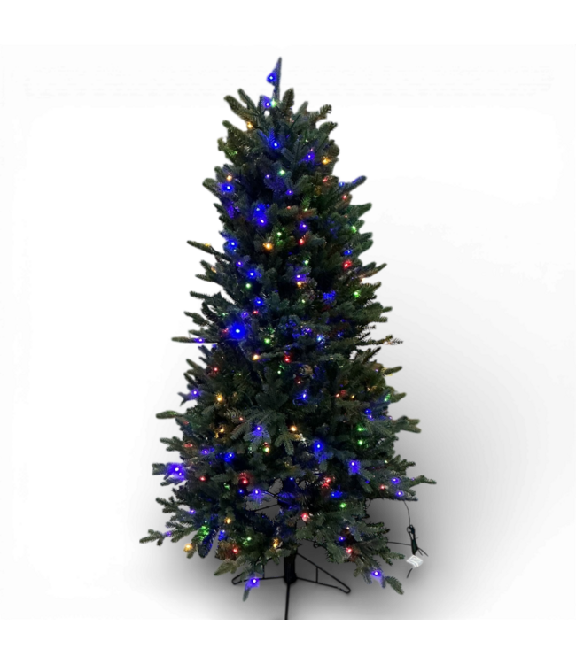 Good condition in box. GE Aspen fir pre-lit Christmas tree with color changing lights. Footswitch to switch between warm white, twinkle, and colors. Dimensions: Easy two piece assembly. Dimensions: Width: 36" Height: 5' ft.