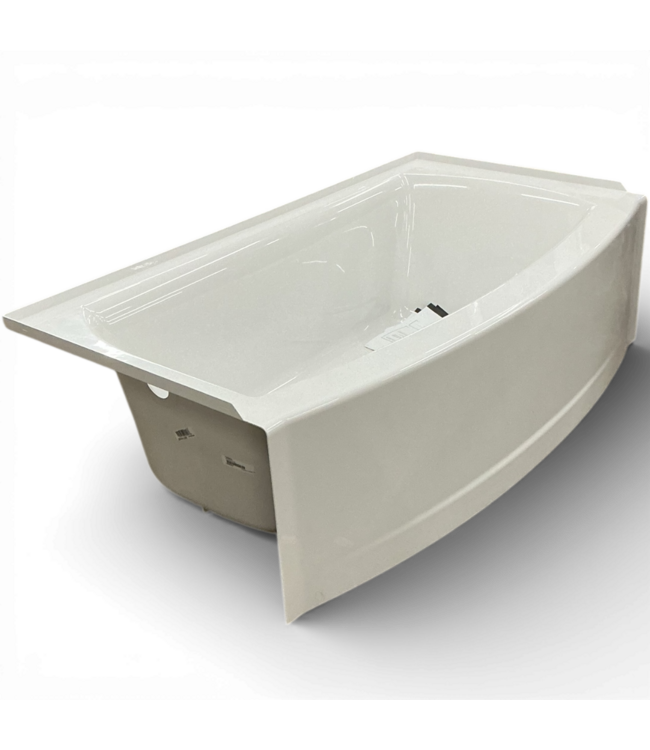 Good condition. American Standard Elevate White Fiberglass Alcove Soaking Bathtub. Curved design. Non-slip design. Versatile design works for 30"-36" alcoves. Hardware included. Dimensions: 60"W x 30"L x 18"H. "Bottom support bracket missing"