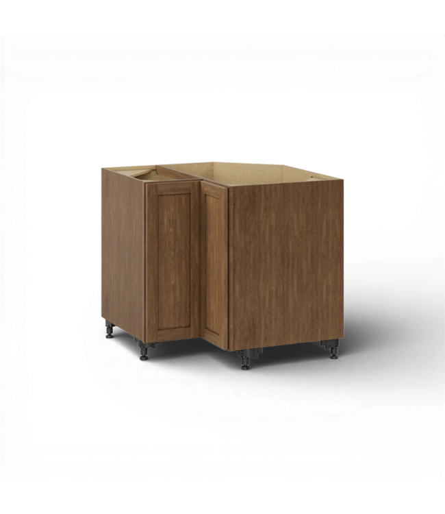 Good condition in box. Like new. Whalen CLICK-IT Sherwood Hills 36-in W x 34.5-in H x 36-in D Walnut Birch Lazy Susan Corner Base Ready to Assemble (RTA) Plywood Cabinet Raised Panel Shaker. Dimensions: 36"W x 34.5"H x 36"D.