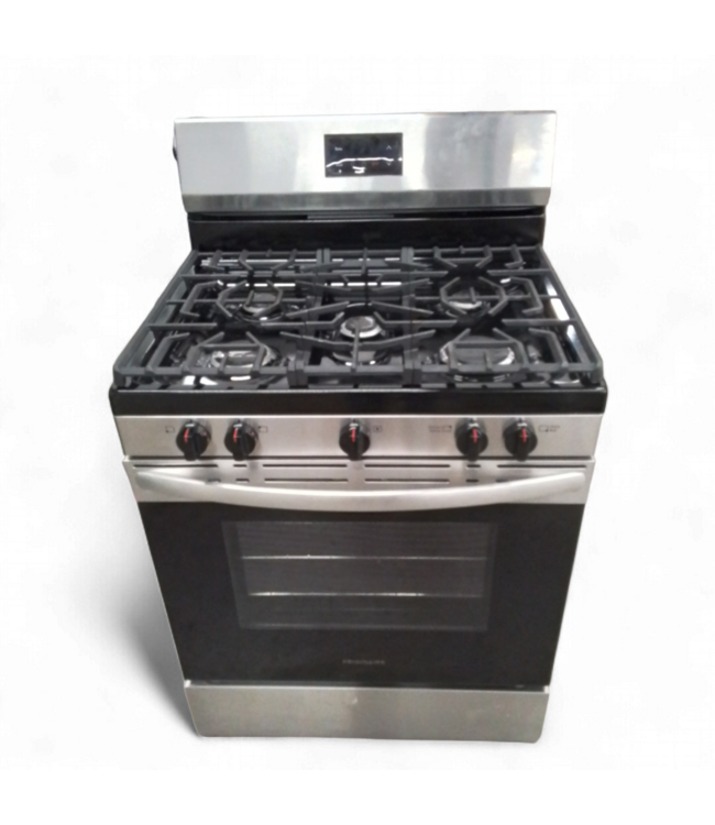 Good condition. Like new. Sold for $1,000 elsewhere. Frigidaire 30-in 5 burners 5.1-cu ft 5 Burners. 18,000 BTU Quick Boil burner. Even Baking Technology. Large 5.1 cu ft oven capacity. Dimensions: 30"W x 46.75"H to 47.75"H x 26"D.