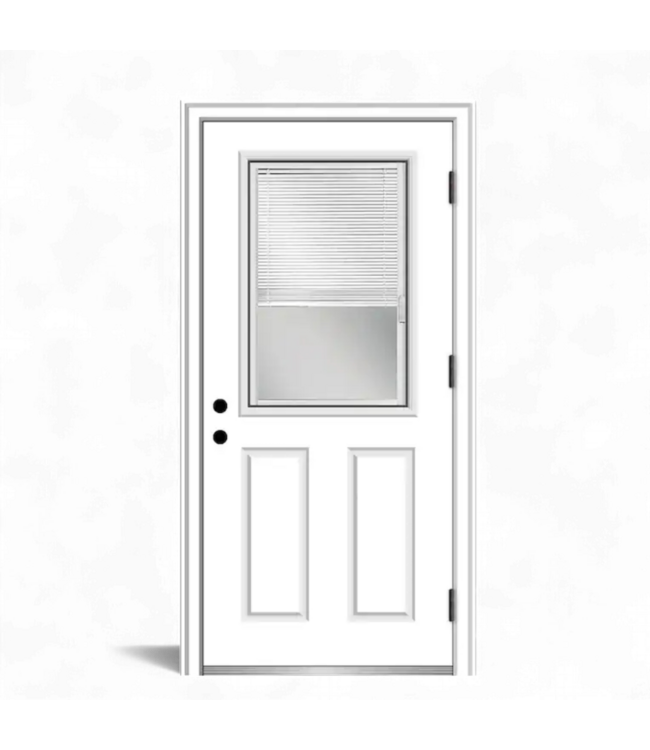 Fiberglass Half lite Primed Prehung Front Door with Brickmould Insulating core with Blinds.