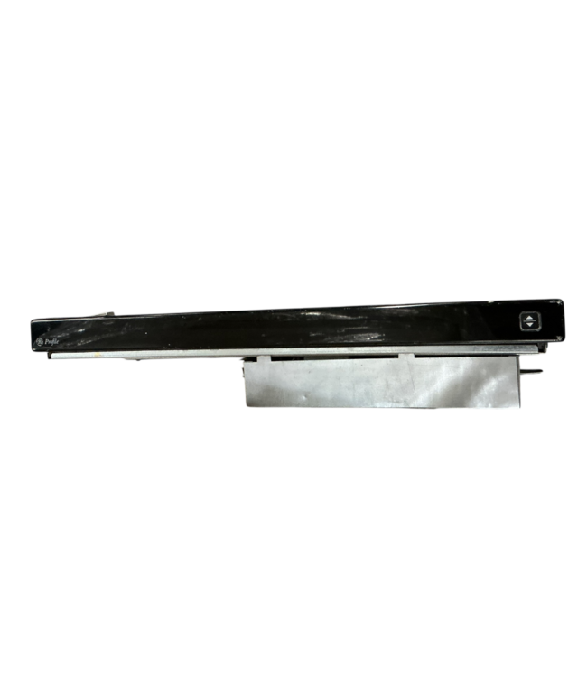 Used in good condition. GE Profile 30" Downdraft System Black. Telescopic hood raiser retracts when not in use. 390 CFM. Removable grease filter. Variable speed with side control. Black on black. Dimensions: 30"W x 2.25"D x 27"H.