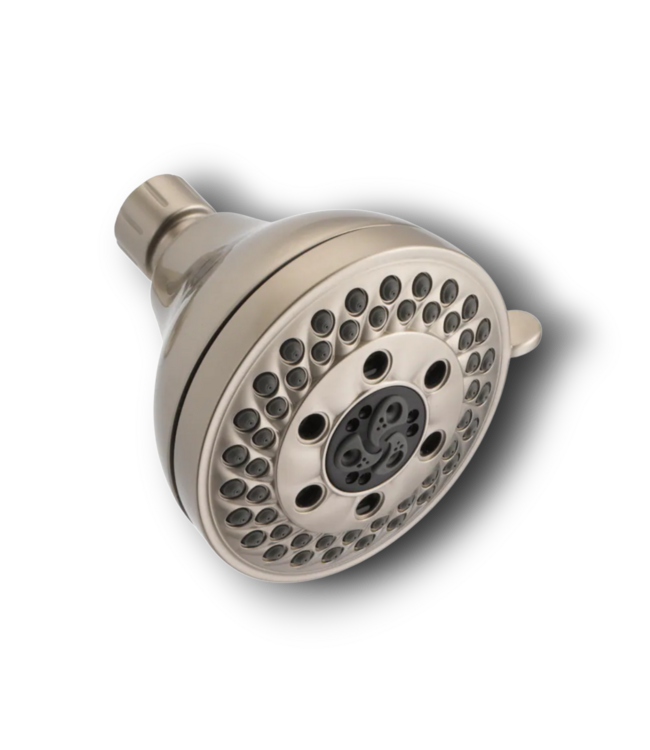 Good condition in package. Like new. Delta Universal Showering Components 5.0 -Spray Spotshield Brushed Nickel 4-in Round Shower Head 1.75 GPM. 5 spray patterns, including a water-saving pause setting, allow you to customize your shower experience. Touch-