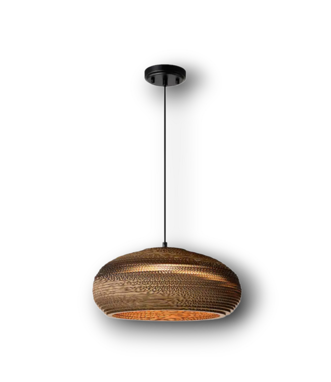 Good condition in box. Like new. Edvivi Nordic 1 -Light Matte Black Paper Metal Chandelier. Hardwired. dry rated. Dimmable. Modern Nordic style with natural brown origami paper shade. Adjustable hanging length for versatile ceiling heights.