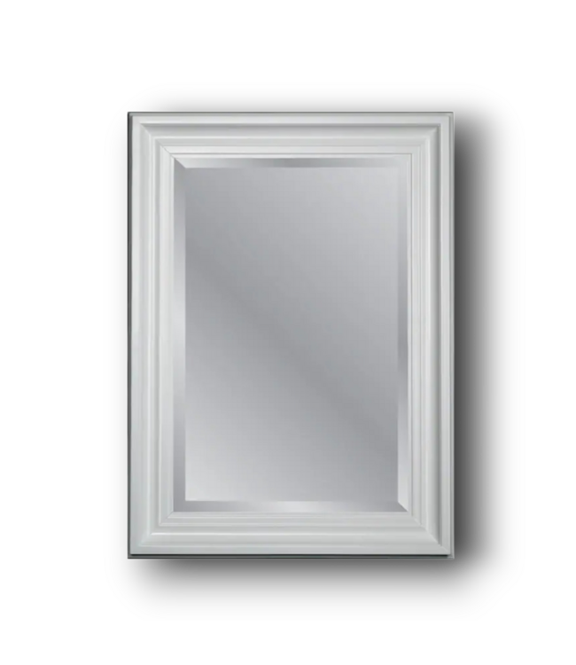 Good condition. Like new. allen + roth 31.75-in W x 43.75-in H Rectangle White Beveled Wall Mirror. Hangs horizontally or vertically. Wood frame with beveled edges. Dimensions: 31.75"W x 43.75"H.