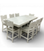 Lightly distressed white finish. base storage- 2 wire baskets, 1 door with matching wire, 2 open shelves, metal accents. Industrial style. Solid hardwood with birch veneers. Wrapped in a neutral color seat fabric, the seats need a bit of cleaning. Attached shiplap back with a dark metal handle. Flared back legs, stretchers, and black metal footrests: 22.5"D x 19.5"L x 42"H.
