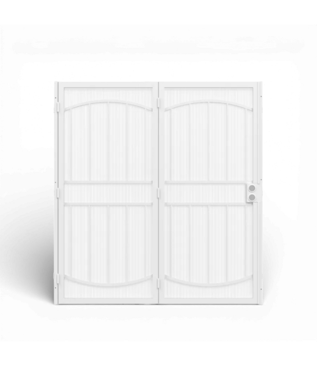 Good condition. Like new. RELIABILT 72-in x 77.5-in White Steel Double Security Screen Door. Universal/Reversible. Surface Mount. Dimensions: 72"W x 77.5"H.