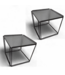 Good condition. Set of Glass End Tables 19"W x 20 "L x 17"H. Matte black powder-coated steel frame. Minimalist geometric cube silhouette. Durable inset glass surface. Dimensions: 19"W x 20"L x 17"H.