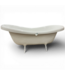 Used in good condition. White Acrylic Slipper Clawfoot Tub . Glossy white. Freestanding. Victorian shape. Center drain. Brushed nickel 4 Lion paw foot, faucet, drain, hardware included. Wall mount faucet. Dimensions: 31"W x 72"L x 28"H.