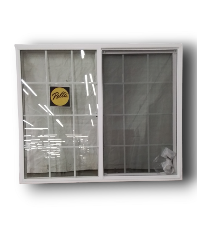 Good condition. Like new. Pella White Vinyl Horizontal Sliding Window 71"W x 59"H. Screen included. 24 Grids. 250 Series. Annealed. LowE 366 / i89. High altitude with Argon gas. Dimensions: 71-in W x 59-in H.