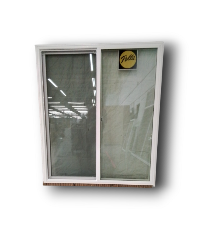 Good condition. Like new. Pella White Vinyl Horizontal Sliding Window 59"W x 69.5"H. Screen included. Annealed. Advanced LowE. High altitude with Argon Gas. Dimensions: 59-in W x 69.5-in H.
