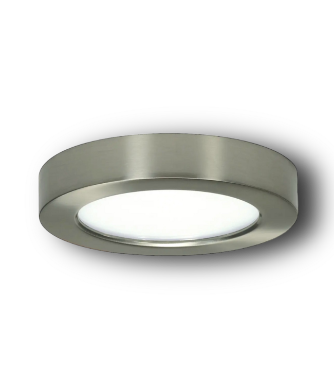 Good condition in box. Like new. Satco Products Blink Flush Mount LED Fixture 5.5-inch. Brushed nickel finish. 50 watt equivalent. Easy to install. 2700K color temperature. Rated 40,000 hours. Dimmable. Hardwired. Dimensions: 5.5"W x 5.5"L x 1"H.