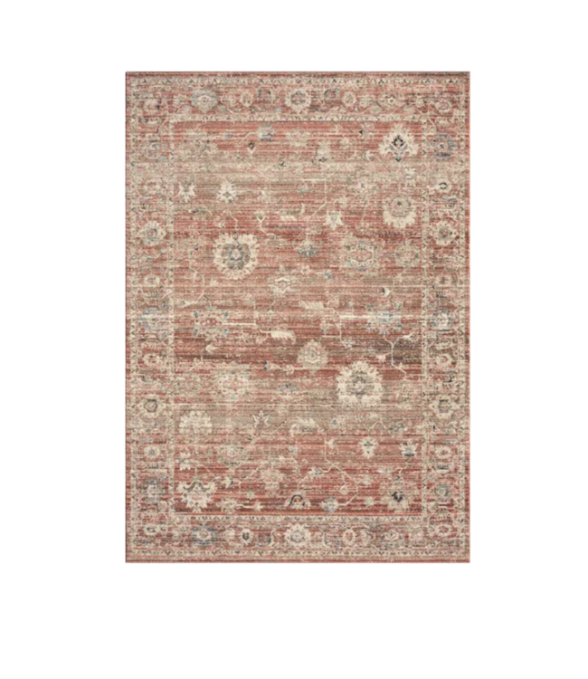 Good condition. Allen + Roth Azalea Rectangular Loomed Indoor Area Rug. Priced at $209 elsewhere. Rust color. Pet friendly. Made of polyester and cotton backing. Oeko-Tex Standard 100 certified. Dimensions: 7.83'W x 0.27"T x 9.91'L.