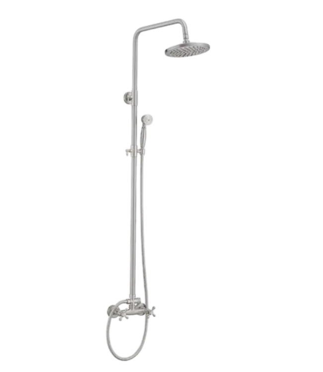 Good condition like new. BWE Terra Flow Waterfall Dual Head Shower Faucet System. Brushed nickel. 1.5GPM water flow. Comes with adjustable adapter, easy install. Made from solid brass; rust/corrosion resistant. Dimensions: 6.69"W x 3.94"D x 53.15"H