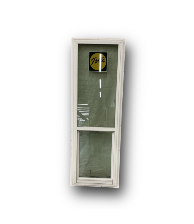 Good condition. Like new. Pella White Vinyl Vertical Sliding Window 23"W x 71"H. Screen included. 250 Series. Single hung. Annealed. One wide. Low E 366 / i89. High altitude with Argon Gas. Dimensions: 23"W x 71"H.