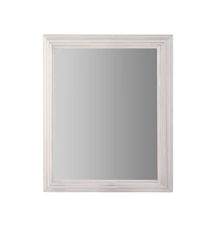 Good condition. Like new. Allen+Roth White Fog Free Mirrored Medicine Cabinet. Picture frame exterior in white finish. Frame and shelves durably constructed. Rectangular beveled edge. Magnetic push latch. Dimensions: 22.5"W x 4"D x 27.5"H.
