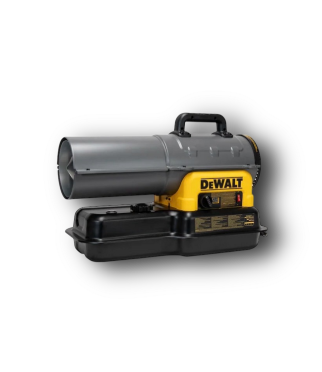 Good condition in box. Like new. DEWALT 80000 -BTU Forced air Outdoor Kerosene Heater. Heats up to 2,000 sq ft. Runs on kerosene, diesel 1 and 2, fuel oil 1 and 2, Jet-A, and JP-8; no conversion required. Digital LED thermostat control.