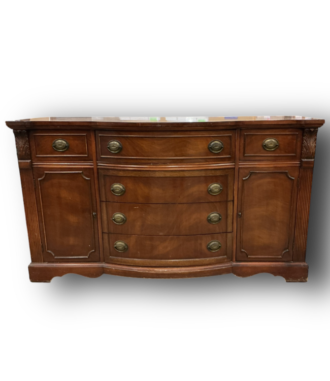Pre-owned in good condition. Designed to sit against a wall, most often in a dining room traditionally used to hold and serve food during meals or gatherings. Dimensions: 62"W x 18.5"D x 35.625"H. Does have small scuffs.