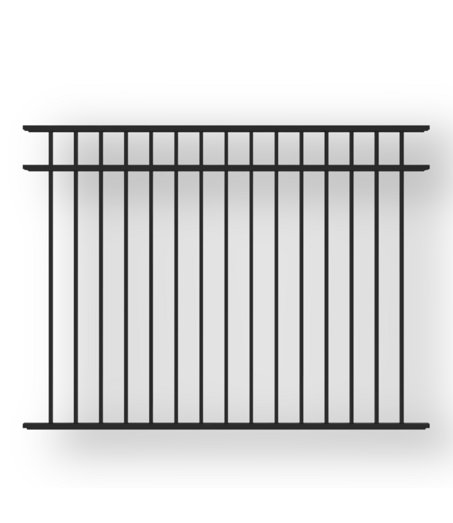 Good condition, assembled. Freedom New Haven Decorative Fence Panel 2 Pack. Black aluminum. Powder coated. Flat top. Residential. Pool code approved. Dimensions: 6.31'W x 0.625" thick per picket x 4.5'H.