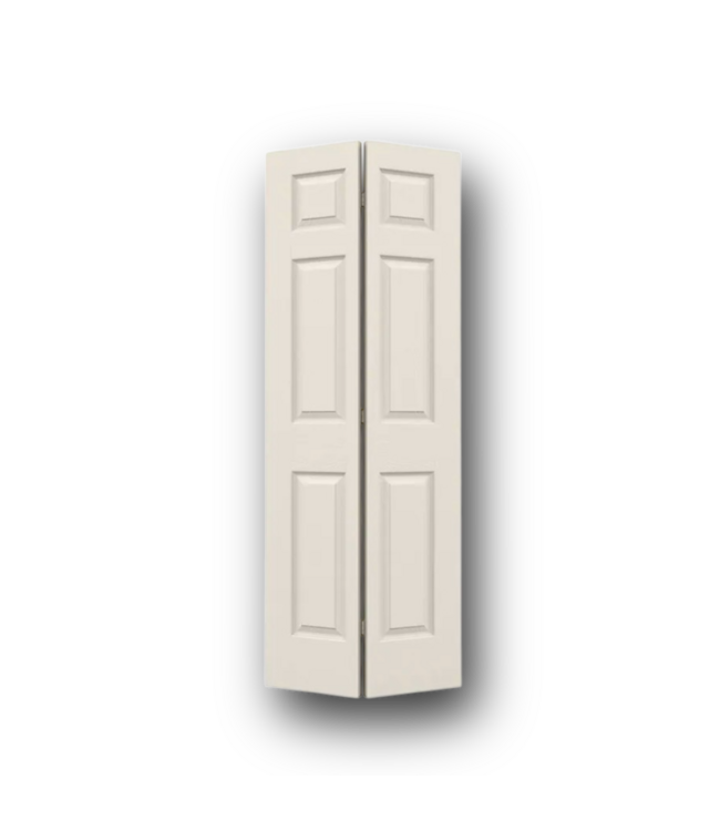 Good condition in plastic. Like new. 30-in x 80-in ReliaBilt White 6-Panel Bifold. This hollow core door has a 1.125-in thickness and includes a top track and hardware. The primed woodgrain finish is ready for paint and resists warping. 30-in x 80-in.