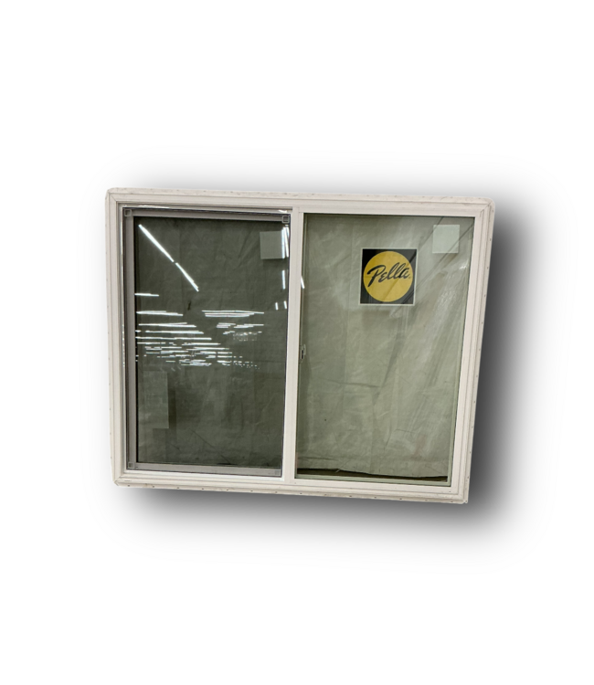 Good condition. Like new. Pella 150 Series White Vinyl Horizontal Sliding Window 59.5" x 47.5". Annealed glass. Argon gas fill. Half screen included. Dimensions: 59.5-in W x 47.5-in H.
