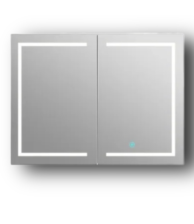 Good condition in box. Deer Valley LED Fog Free Mirrored Medicine Cabinet. Lighted. Surface mount. 2 soft close doors, 2 glass shelves. Bi-view. Hardware included. Touchscreen. Built in power strip. Plug in/hardwired. Dimensions: 48.03"W x 5.59"D x 32.05"