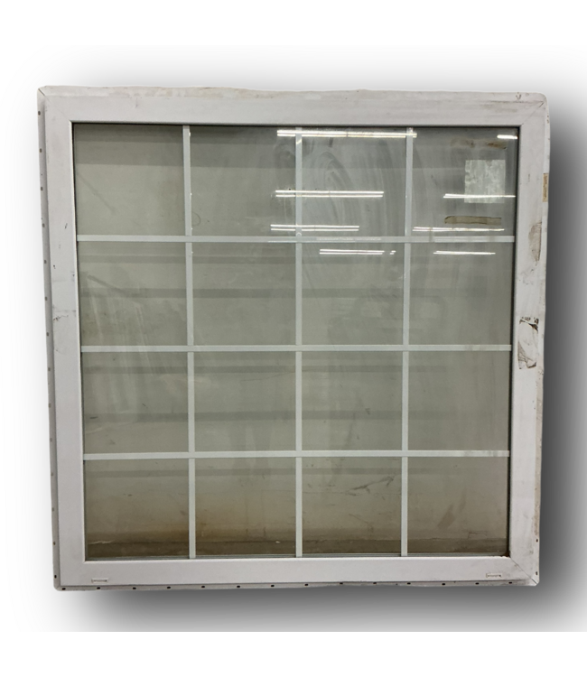 In good condition. White Vinyl Picture Window. 16 internal grids. Fixed frame. White vinyl. Low-E. Double pane. Dimensions: 47.5"W x 47.5"H.