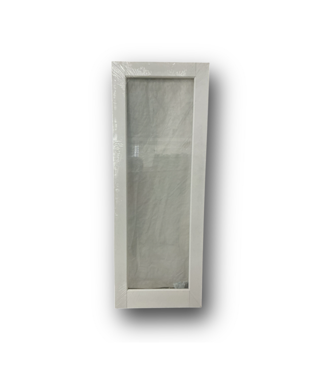 Good condition. Like new. 30-in x 80-in 1-Panel Full Lite Slab Door. White MDF solid-core slab with a modern 1-panel full lite glass design. Primed and ready to paint. No bore or hinge prep included. Dimensions: 30" x 80". Thickness: 1.375".