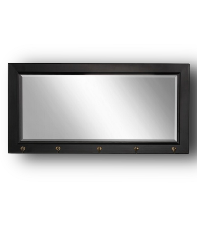 51131 Rectangle Black Beveled Wall Mirror With 5 Hooks
