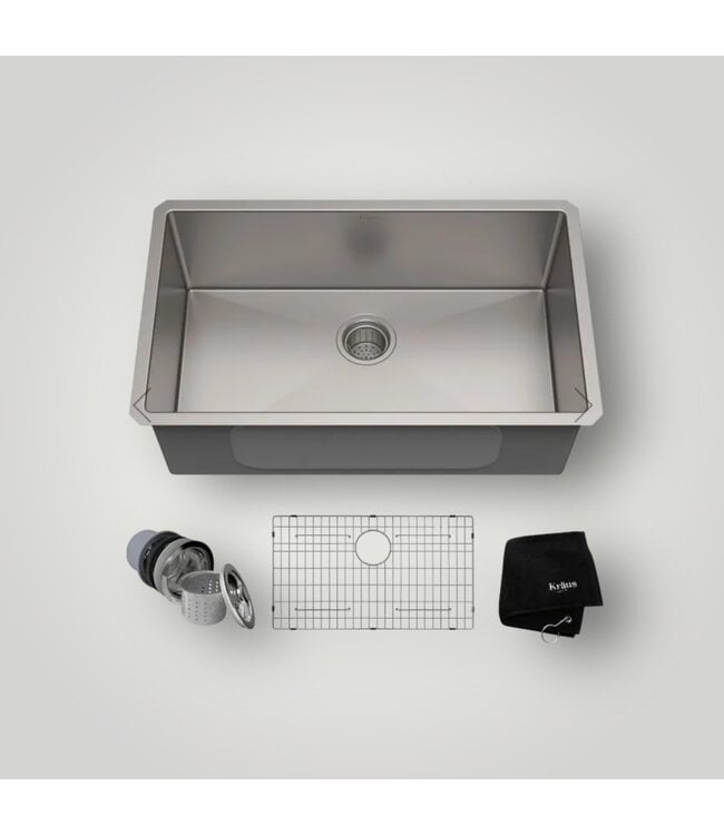 Good condition in box. Kräus standard pro series. 16-gauge stainless steel. Undermount type. Heavy duty resists dents. Noise defend, help absorb noise. Dimensions: 30"L x 18"W x 10.5"H. Minimum cabinet size: 33".