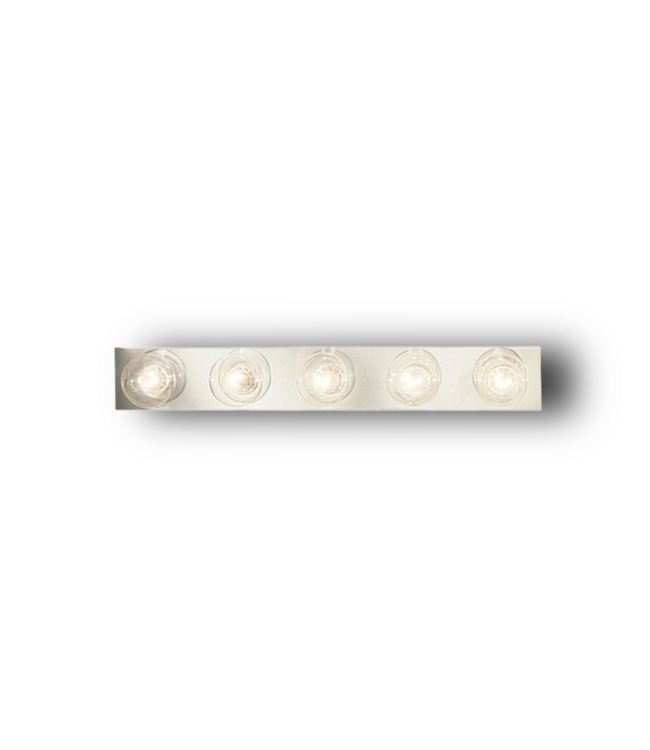 Good condition in box. Like new. Progress Lighting 5-Light Chrome Vanity Light 30". Polished chrome finish. 5-light design. Traditional Broadway style. Ideal for bathroom vanity lighting. Bulbs not included. Size: 30"W x 4.25"H.