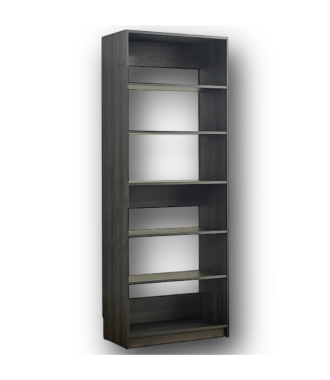 Good condition in box, ready to assemble. Klair Living Prosper 5 Shelves Dark Gray Wood Closet System. Hardware included. Freestanding. 6 shelves- 4 adjustable, 2 fixed. Walk in configuration. Modular design. Dimensions: 31.32"W x 15.7"D x 82.92"H.
