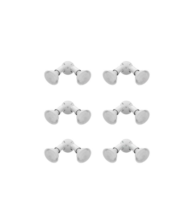 Good condition in box. Lithonia Lighting White Flood Light Kit 6 Count. Hardwired. Saves energy. Tool-free adjustable heads. Designed for easy mounting to junction box. No emergency battery backup available.