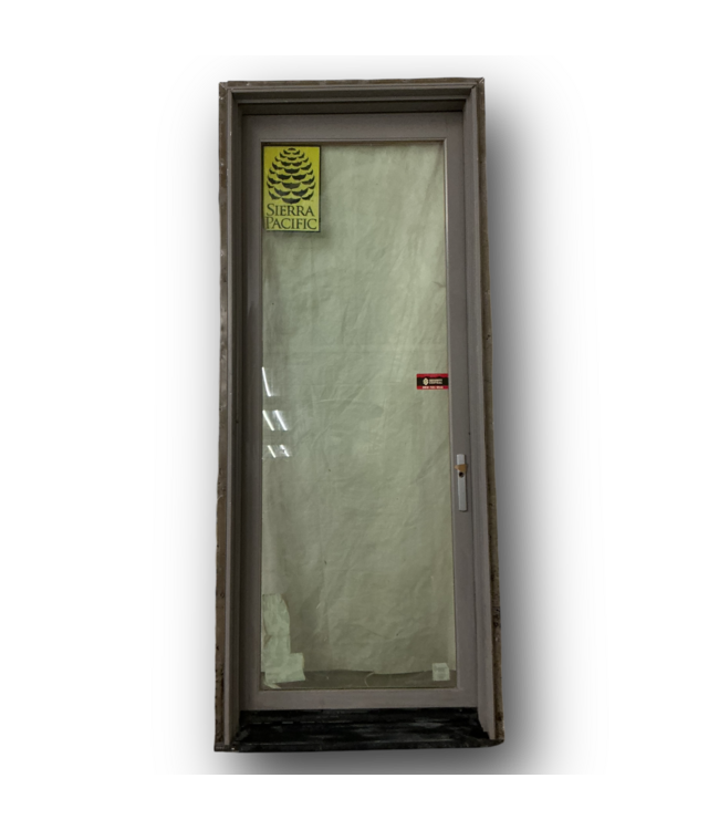 Lightly used in good condition. Sierra Pacific Full Lite Wood/Aluminum Prehung Exterior Door. Gray aluminum clad exterior, unfinished pine wood interior. Insulated glass. LoE-366. Left hand inswing. Without frame: 36"W x 93.75"H x With frame:37.75"W x 96"