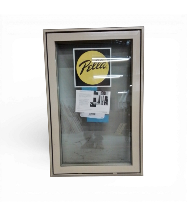 Good condition. Like new. Pella Brown Aluminum Fixed Window 23.5"W x 35.5"H. Annealed. Low E 180 / i89. Argon gas. Energy Star & NFRC certified. Dimensions: 23.5"W X 35.5"H.