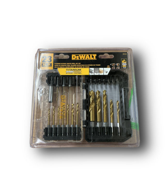 Good condition in package. DeWalt. High speed steel jobber length impact ready driver bit set. Hex shank type. Pilot point delivers speed & clear , burr free holes. Optimized flute channel provides more control & better chip extraction. Read more.
