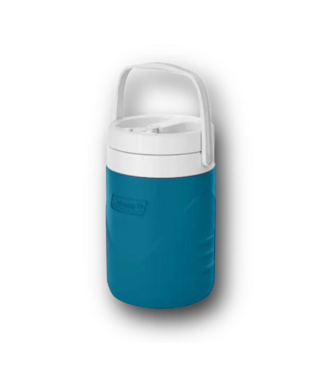 Good condition. Coleman. Hard insulated cup with handle to carry around. Wide mouth top for fast and easy filling. Screw top lid. Holds up to 1-gallon. Plastic material. Cerulean blue color, with white lid.