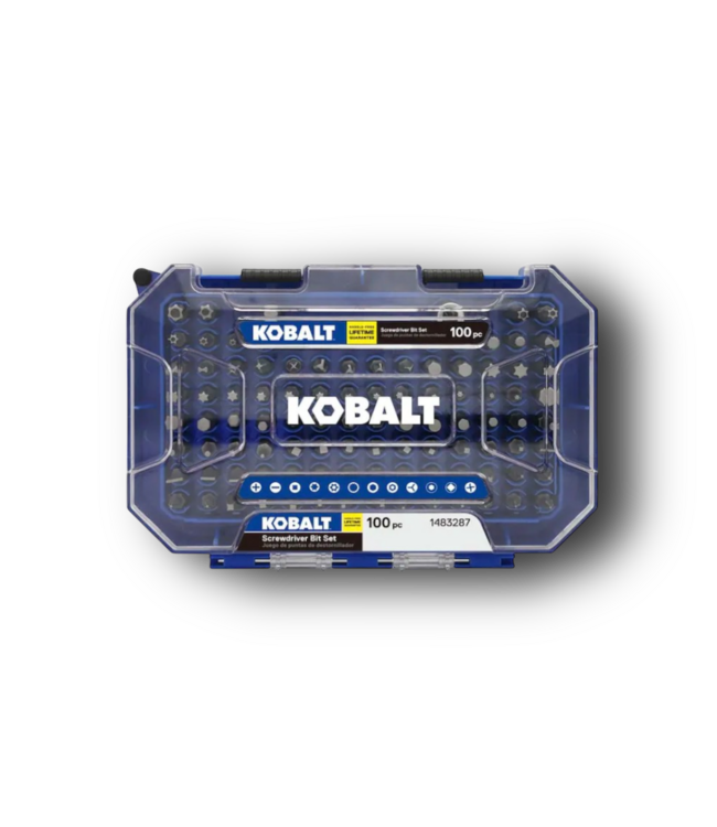 Good condition. Like new. Kobalt 100-Piece Ultimate Screwdriver Bit Set. Features 12 different tip styles, including hard-to-find security bits. Made of durable S2 steel with a 1/4-in hex shank. Includes a magnetic bit holder and hard storage case.