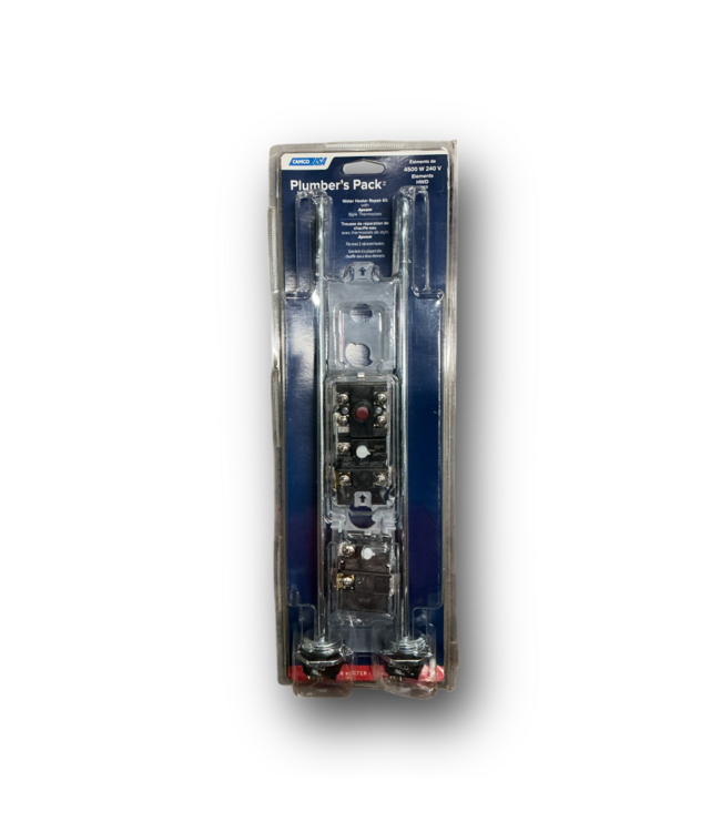 Good condition. Like new. Camco Plumber's Pack Water Heater Repair Kit. Includes two 4500W 240V screw-in elements and two Apcom-style thermostats. Designed for most 2-element electric water heaters. Restores heating efficiency. Easy to install.