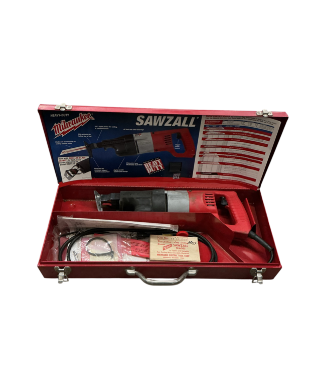 Good condition. Milwaukee Corded Sawzall w/ Metal Case. 12 Amp motor. 0-3,000 SPM. Gear protecting clutch. Quik-lok blade clamp. Tool-free blade changes. Double-insulated. Impact resistant carrying case.