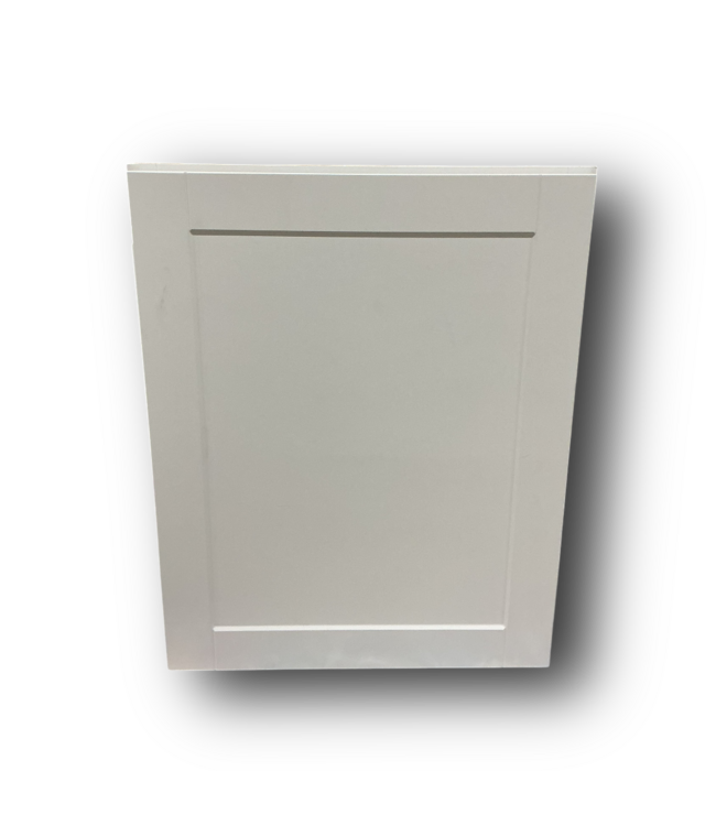 Good condition. Diamond Now Arcadia collection. Fully assembled. No shelves. 1-recessed shaker panel style door. White laminate finish. Solid wood frame. Full overlay. Dimensions: 24"W x 12"D x 30"H.