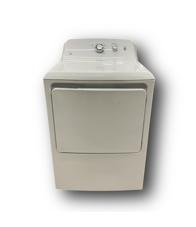 Used in good condition. GE. White color. 5-drying cycles. 3-heat options. large drum good for bulky loads like towels and bedding. Dimensions: 27"W x 29.5"D x 44"H.